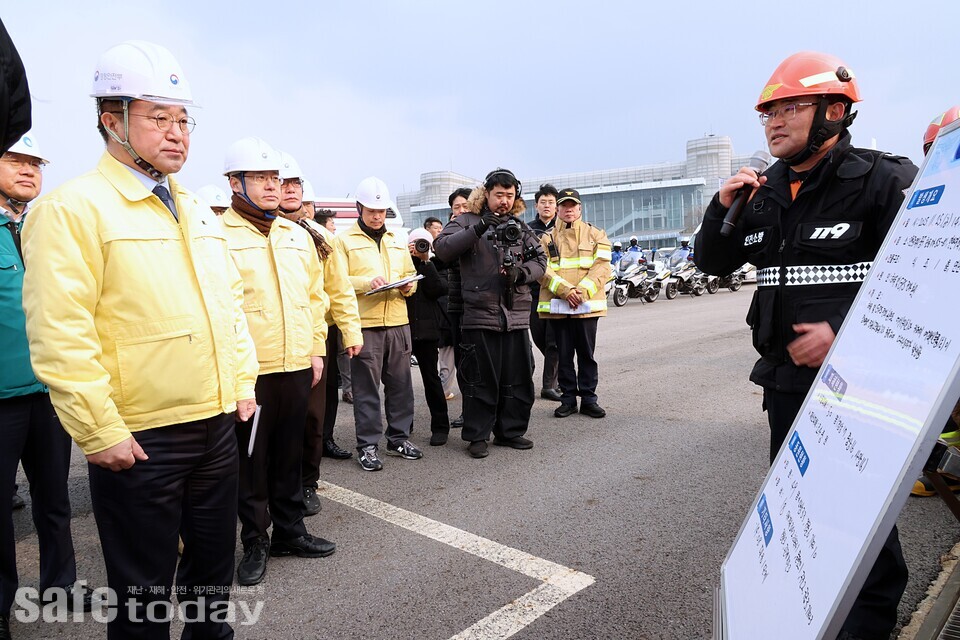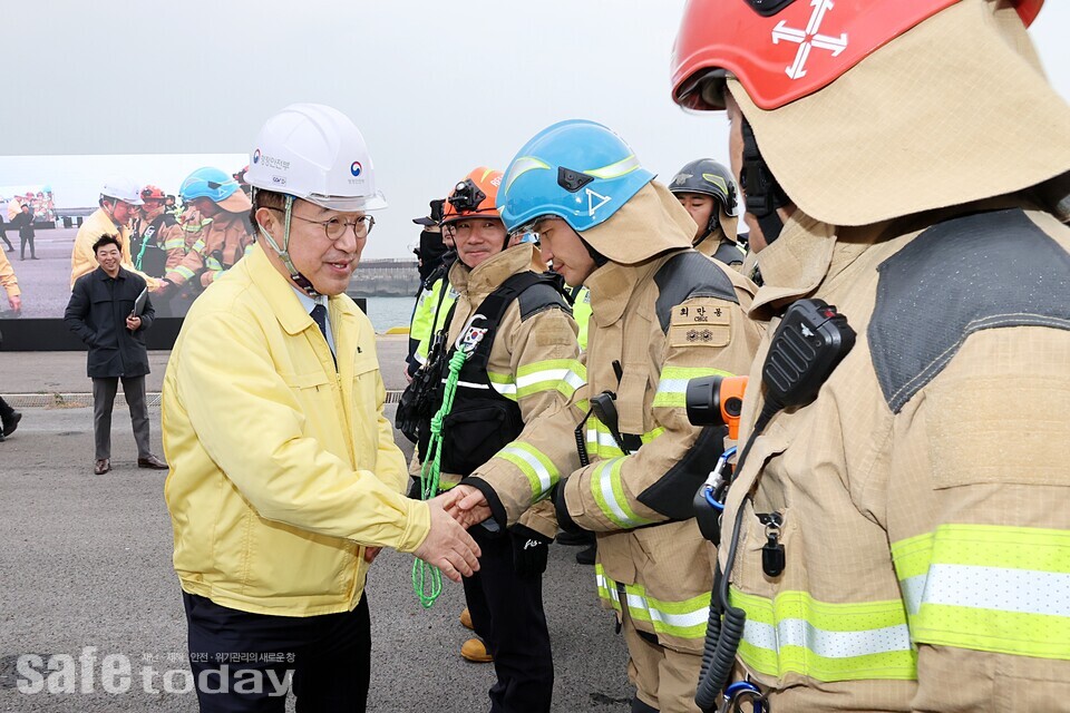 윤호중 행정안전부 장관은 임원섭 인천소방본부장 등과 함께 11월25일 오후 29개 관계기관 합동으로 인천항 인근 해상에서 열린 레디 코리아(READY Korea) 4차 훈련, 해상 선박 충돌사고 대응체계 훈련을 참관했다. 세이프투데이 윤성규 기자(sky@safetoday.kr)