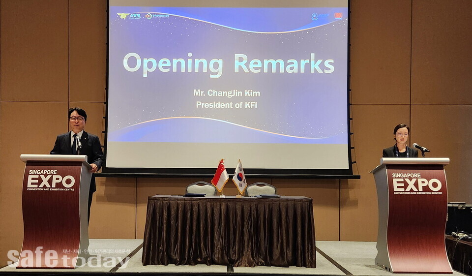 KFI는 SIDEX 2025 비즈니스 포럼 세션에서 싱가포르 소방산업협회와 소방산업 분야 전략적 협력 강화를 위한 업무협약(MOU)을 체결했다.